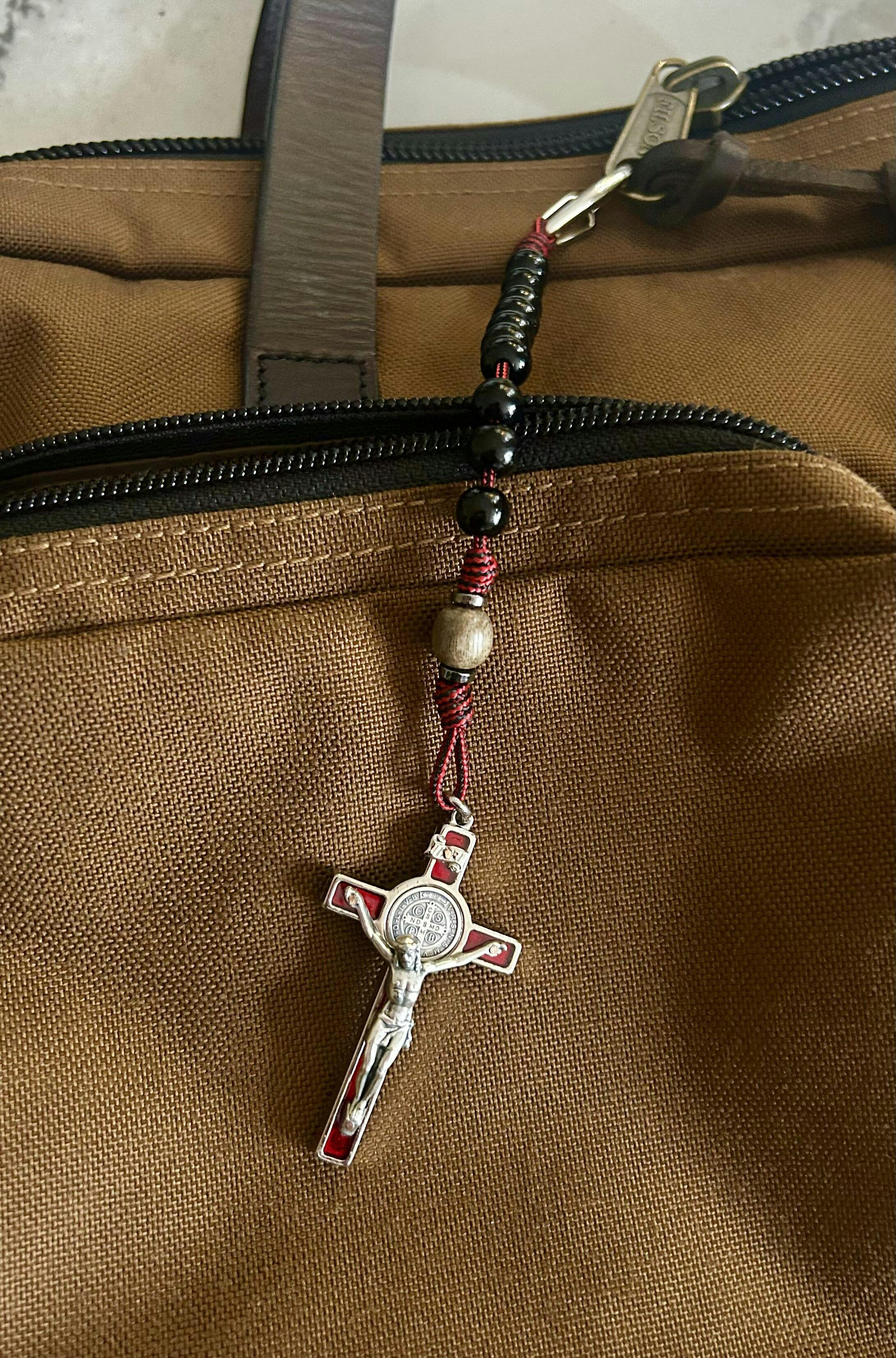 - Brilliant Silver Color St. Benedict - Red Crucifix